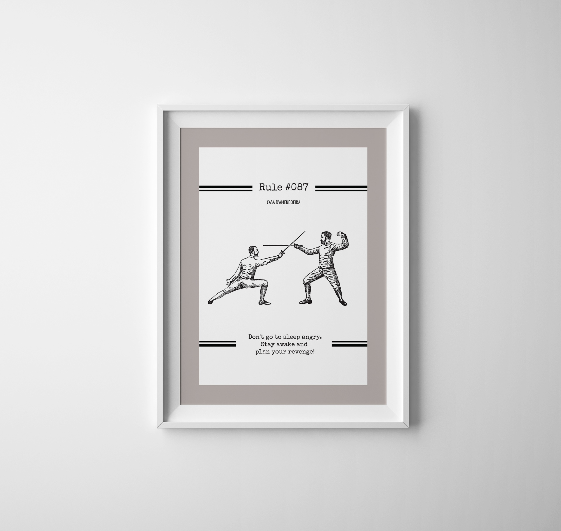 Adiciona um toque de magia à tua casa com as estampas únicas e bem-humoradas "As Regras" da Casa D'Amendoeira. Concebida para despertar sorrisos e suscitar conversas, a nossa coleção celebra a arte de viver. As estampas de "As Regras", em toda a sua glória, servem como um guia lúdico para descomplicar a vida. Explora uma coleção de regras politicamente incorretas para uma boa risada e pérolas motivacionais para inspiração.