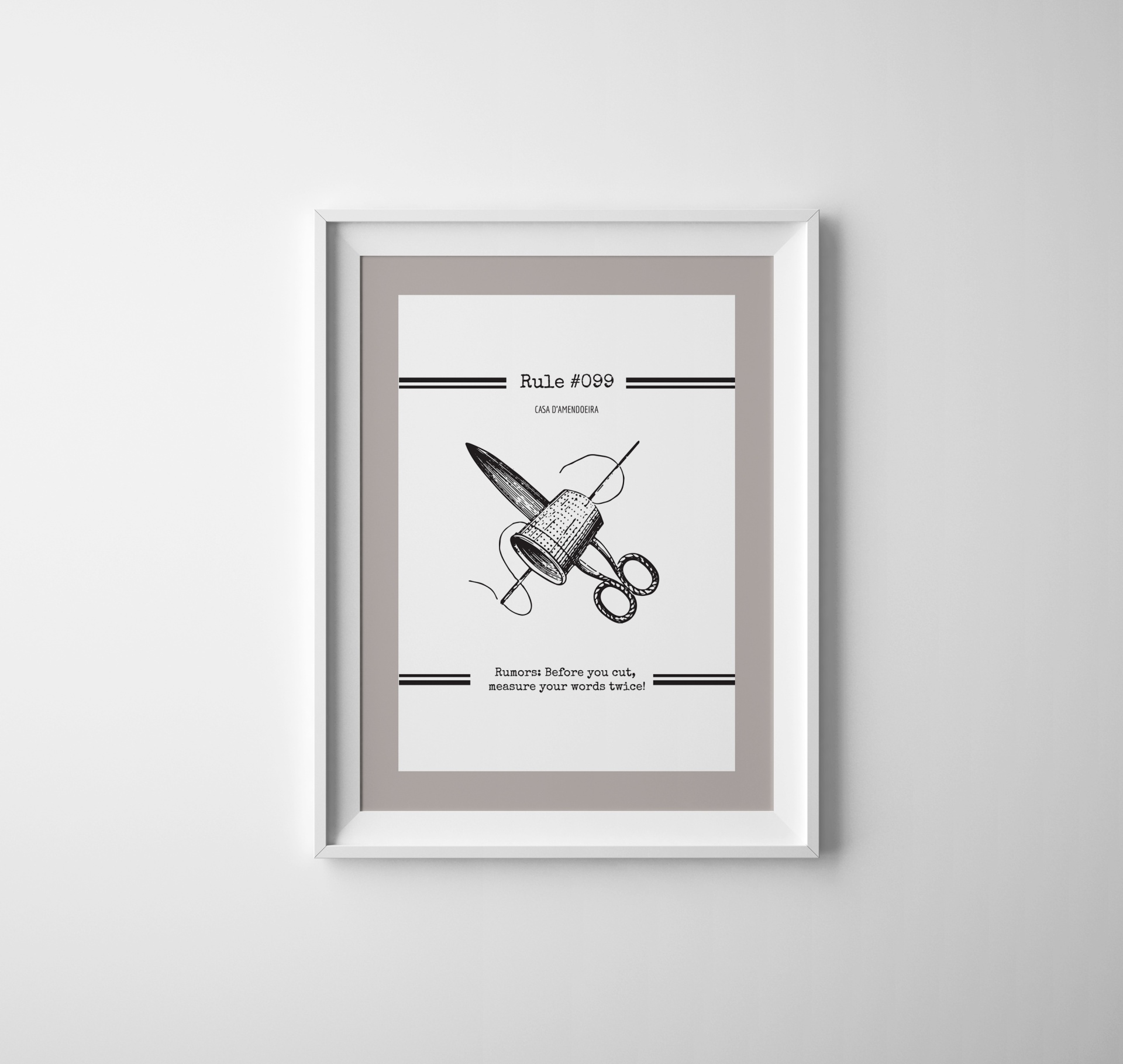Adiciona um toque de magia à tua casa com as estampas únicas e bem-humoradas "As Regras" da Casa D'Amendoeira. Concebida para despertar sorrisos e suscitar conversas, a nossa coleção celebra a arte de viver. As estampas de "As Regras", em toda a sua glória, servem como um guia lúdico para descomplicar a vida. Explora uma coleção de regras politicamente incorretas para uma boa risada e pérolas motivacionais para inspiração.