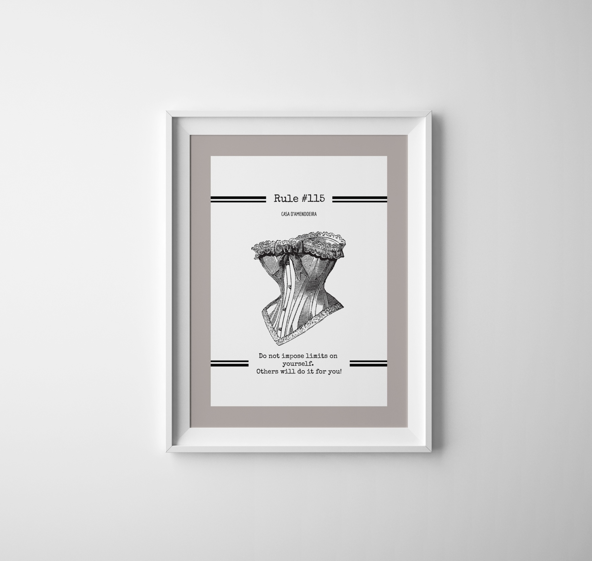 Adiciona um toque de magia à tua casa com as estampas únicas e bem-humoradas "As Regras" da Casa D'Amendoeira. Concebida para despertar sorrisos e suscitar conversas, a nossa coleção celebra a arte de viver. As estampas de "As Regras", em toda a sua glória, servem como um guia lúdico para descomplicar a vida. Explora uma coleção de regras politicamente incorretas para uma boa risada e pérolas motivacionais para inspiração.