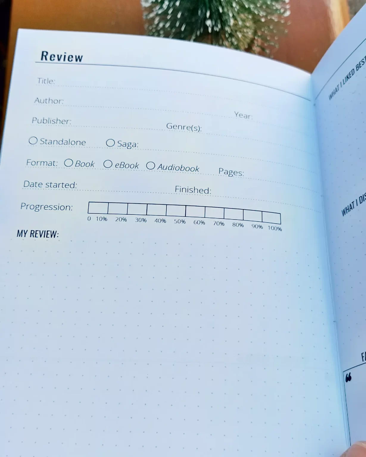 Descobrirás uma ferramenta que te permitirá abraçar o teu amor pela leitura, mantendo as tuas aventuras literárias organizadas. Há 40 páginas dedicadas a recensões de livros, que permite refletir e avaliar e, pormenor cada um. A secção Favoritos permite registar os teus livros favoritos, autores e citações memoráveis.